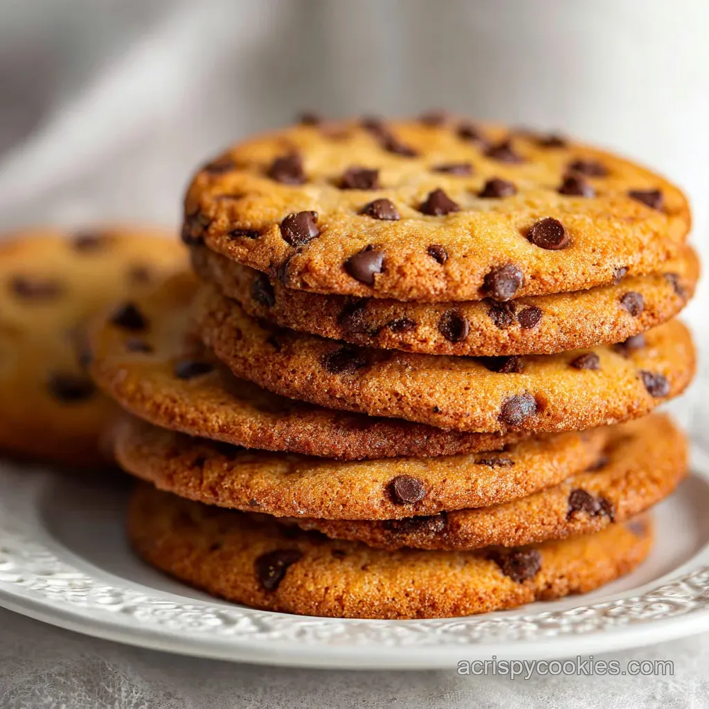 Crispy thin chocolate chip cookies are meant to be heard. I love serving these on a flat wooden board alongside a selection of sharp cheeses or a cold glass of whole milk. Because they are so light, they don't feel as heavy as a standard cookie, making them the perfect "just one more" dessert for a dinner party.